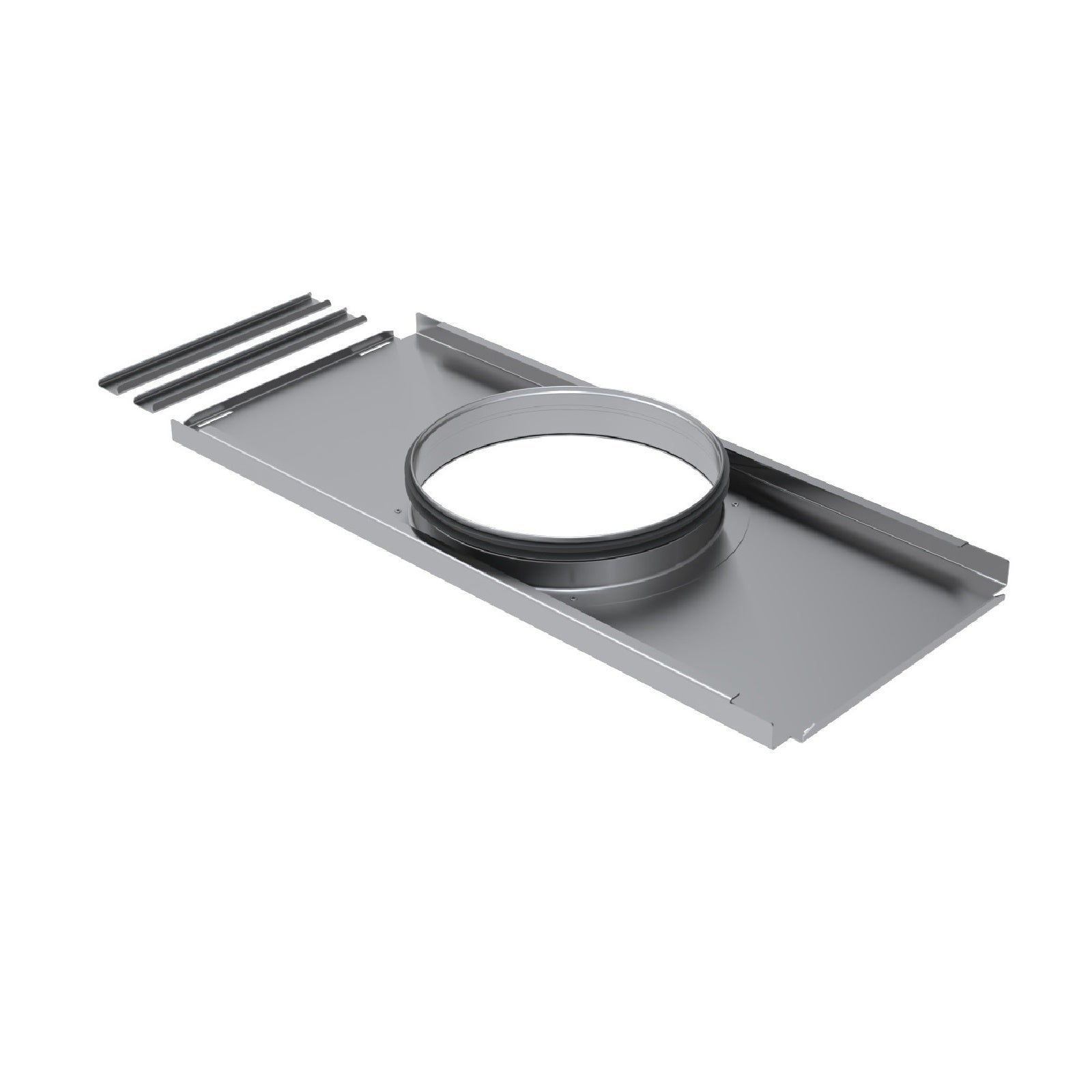 Placa de conexión Zehnder ComfoWell con conector central a conductos generales de ventilación. Equipado de junta de estanquidad. Se suministra con bridas de union a cualquier elemento ComfoWell de la misma sección.